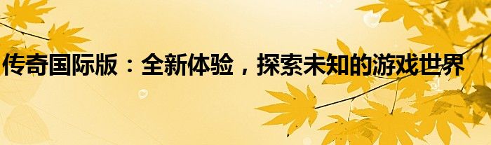 总之,传奇国际版是一款非常出色的游戏,它提供了一个全新的游戏世界和丰富的游戏玩法,让玩家可以沉浸其中并享受游戏的乐趣。如果你是一名游戏爱好者,那么不妨尝试一下传奇国际版,探索未知的游戏世界。