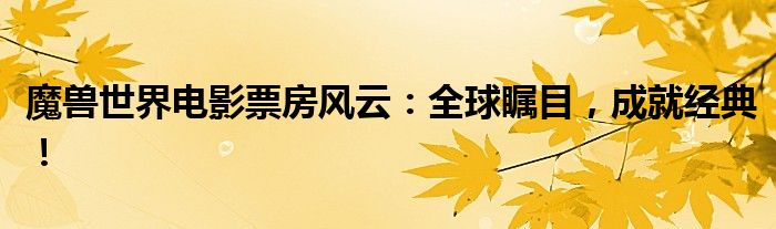 魔兽世界电影票房风云:全球瞩目,成就经典!