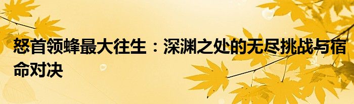因为他们相信,只有通过不断的挑战和磨砺,才能最终战胜怒首领蜂,实现真正的最大往生。