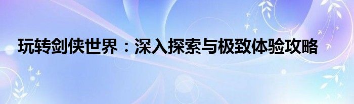 本文将以“多玩剑侠世界”为主题,为玩家提供深入的游戏探索与极致体验攻略。我们将涵盖游戏角色发展、武器装备升级、技能系统详解、PVP与PVE玩法技巧、社交互动等多个方面,助你在剑侠世界中成为一名真正的顶尖高手。