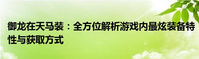 御龙在天马装:全方位解析游戏内最炫装备特性与获取方式