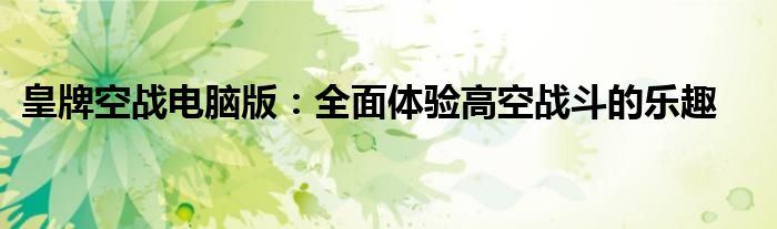 皇牌空战电脑版:全面体验高空战斗的乐趣