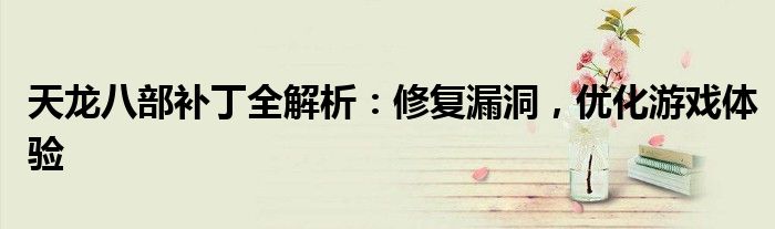 天龙八部补丁全解析:修复漏洞,优化游戏体验