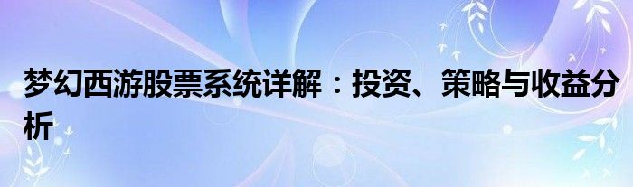 随着网络游戏产业的迅速发展,虚拟经济与实体经济之间的联系日益紧密。梦幻西游作为一款经典的网络游戏,其股票系统吸引了众多玩家的关注。本文将详细介绍梦幻西游股票系统的基本玩法、投资策略以及收益分析,帮助玩家更好地理解和利用这一系统。