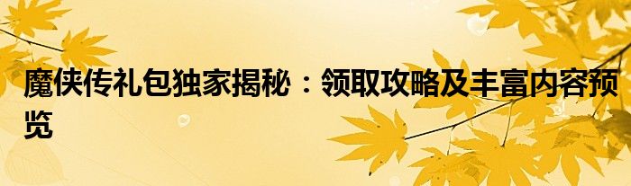 《魔侠传礼包独家揭秘:领取攻略及丰富内容预览》——揭开神秘面纱,一探魔侠世界中的惊喜礼包!本文将为您带来关于“魔侠传礼包”的详尽信息,包括如何轻松领取礼包、礼包内含的珍贵物品以及丰富的游戏道具等精彩内容。