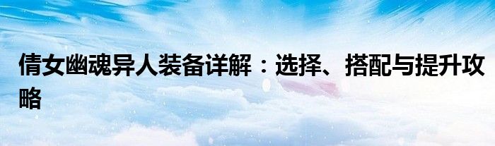 本文为倩女幽魂的异人玩家提供了详细的装备选择、搭配与提升攻略。希望玩家能够通过本文的指导,更好地选择和搭配异人装备,提高角色实力,享受游戏的乐趣。