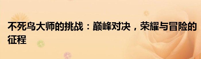 不死鸟大师的挑战:巅峰对决,荣耀与冒险的征程