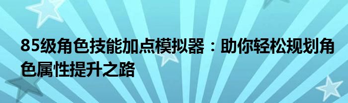 85级角色技能加点模拟器:助你轻松规划角色属性提升之路