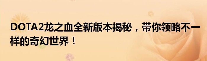 DOTA2龙之血全新版本揭秘,带你领略不一样的奇幻世界!