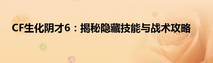 CF生化阴才6:揭秘隐藏技能与战术攻略