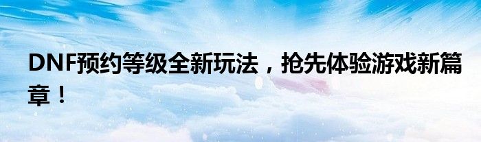DNF预约等级全新玩法,抢先体验游戏新篇章!