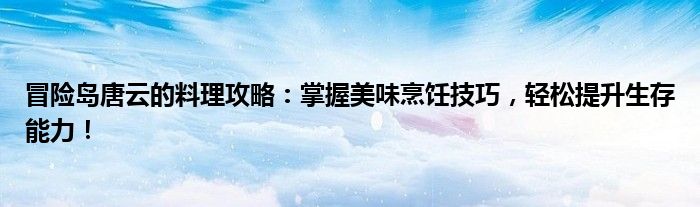 冒险岛唐云的料理攻略:掌握美味烹饪技巧,轻松提升生存能力!