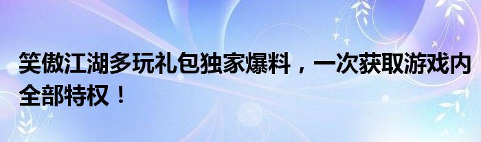 尊敬的游戏爱好者们,好消息来啦!我们为您精心准备了《笑傲江湖》游戏的多玩礼包,现在就来独家爆料,让您轻松获取游戏内的全部特权!