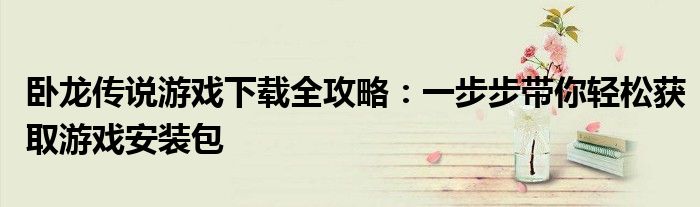 卧龙传说游戏下载全攻略:一步步带你轻松获取游戏安装包