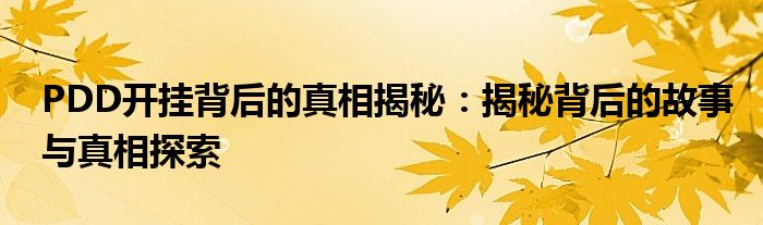 PDD开挂背后的真相揭秘:揭秘背后的故事与真相探索