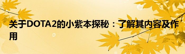 本文将详细介绍DOTA2游戏中小紫本的由来、功能及其在游戏中的独特地位。我们将带您了解小紫本为何如此受到玩家们的喜爱和追捧,以及它如何帮助玩家提升游戏体验和技能水平。