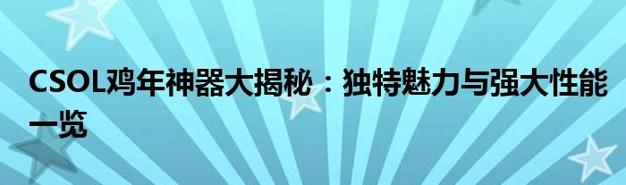 CSOL鸡年神器大揭秘:独特魅力与强大性能一览
