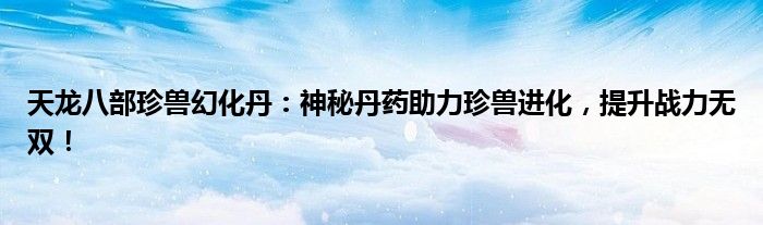 天龙八部珍兽幻化丹:神秘丹药助力珍兽进化,提升战力无双!