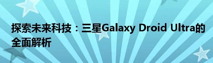 探索未来科技:三星Galaxy Droid Ultra的全面解析