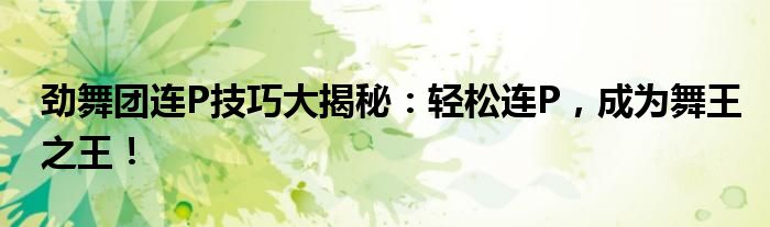 本文将为大家介绍《劲舞团》中连P的技巧和方法,帮助玩家轻松实现连P,成为舞王之王!我们将从以下几个方面展开讲解: