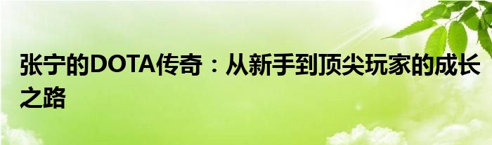 张宁的DOTA传奇:从新手到顶尖玩家的成长之路