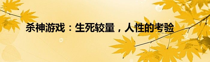 “杀神游戏”不仅仅是一场游戏,更是一场关于人性、勇气和智慧的较量。它让玩家在虚拟的世界里体验真实的情感,感受生活的酸甜苦辣。只有真正了解人性,勇敢面对困难,智慧地解决问题,才能在“杀神游戏”中走得更远。