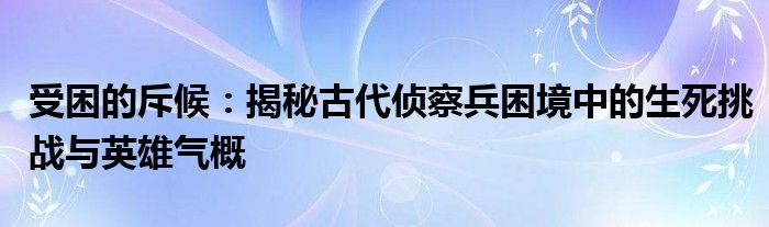 受困的斥候是古代战场上的英雄,他们用自己的勇敢和智慧,为军队提供了宝贵的情报,为战争的胜利立下了汗马功劳。通过对受困的斥候的了解,我们不仅可以更加深入地了解古代战争的历史背景,还可以感受到人类在面对困境时所展现出的勇敢和坚韧。