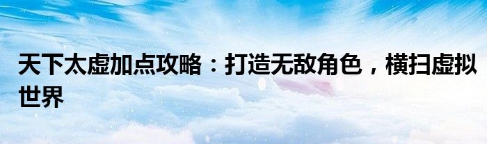 天下太虚加点攻略:打造无敌角色,横扫虚拟世界