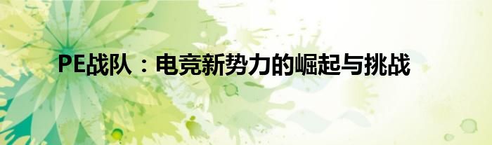 PE战队:电竞新势力的崛起与挑战