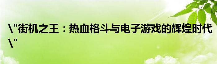 "街机之王:热血格斗与电子游戏的辉煌时代"
