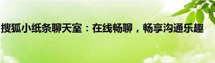 搜狐小纸条聊天室:在线畅聊,畅享沟通乐趣