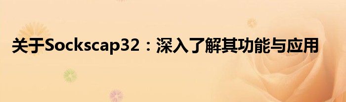 本文将深入探讨关于Sockscap32的各个方面,包括其定义、功能、使用场景等。让我们一同来揭开这个强大工具的神秘面纱。