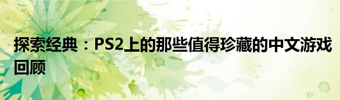 本文回顾了PS2时期的一些经典中文游戏。这些游戏涵盖了多种类型,包括角色扮演游戏、动作冒险游戏等,都是当年在PS2主机上受到众多玩家喜爱的经典之作。本文将介绍这些游戏的特色和魅力,带领读者重温那段美好的游戏时光。