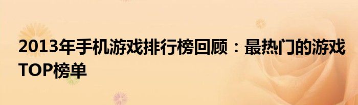 2013年手机游戏排行榜回顾:最热门的游戏TOP榜单