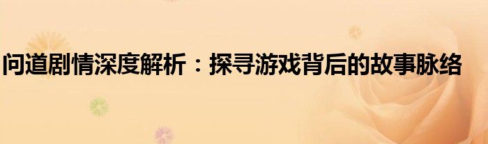 问道剧情深度解析:探寻游戏背后的故事脉络