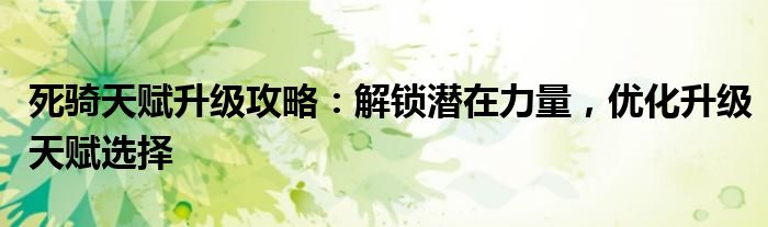 总结:死骑的天赋升级是一个复杂而又充满乐趣的过程。通过合理的选择和升级,可以解锁角色的潜在力量,提高游戏体验。希望这篇攻略能帮助玩家更好地理解死骑的天赋系统,更好地进行游戏。