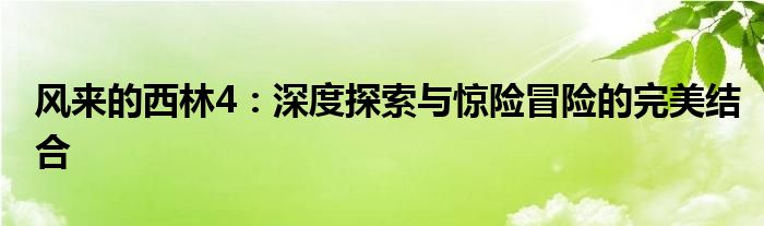 风来的西林4:深度探索与惊险冒险的完美结合