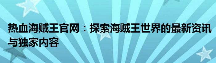 热血海贼王官网:探索海贼王世界的最新资讯与独家内容