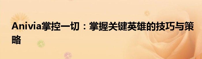 Anivia掌控一切:掌握关键英雄的技巧与策略