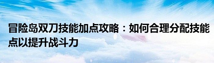 冒险岛双刀技能加点攻略:如何合理分配技能点以提升战斗力