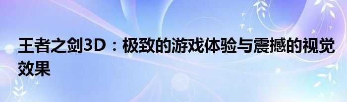王者之剑3D:极致的游戏体验与震撼的视觉效果