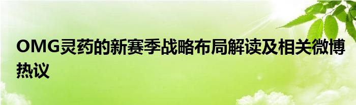 OMG灵药的新赛季战略布局解读及相关微博热议
