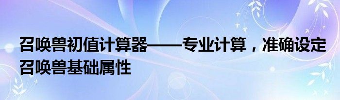 召唤兽初值计算器——专业计算,准确设定召唤兽基础属性