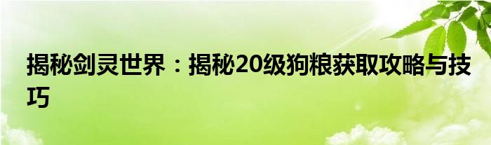 揭秘剑灵世界:揭秘20级狗粮获取攻略与技巧