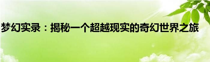 梦幻实录:揭秘一个超越现实的奇幻世界之旅