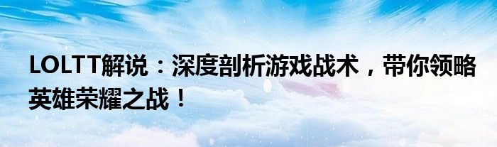 LOLTT解说:深度剖析游戏战术,带你领略英雄荣耀之战!