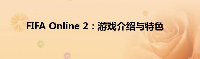 总之,FIFA Online 2是一款非常出色的足球模拟游戏,它提供了丰富的游戏内容和真实的足球体验。无论你是足球迷还是游戏爱好者,都可以在这个游戏中找到自己的乐趣。