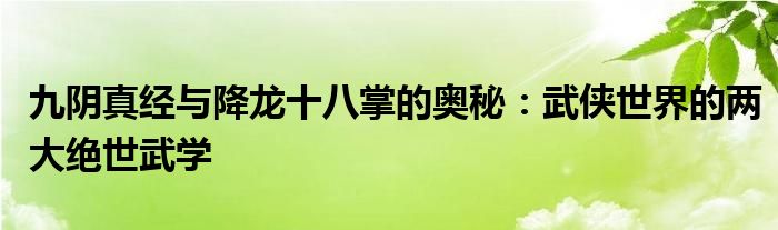 九阴真经与降龙十八掌的奥秘:武侠世界的两大绝世武学