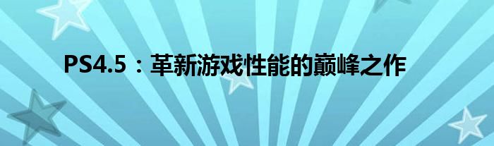 PS4.5:革新游戏性能的巅峰之作