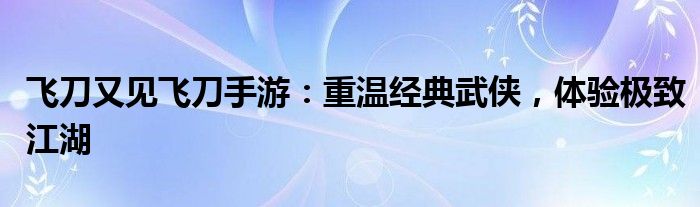飞刀又见飞刀手游:重温经典武侠,体验极致江湖